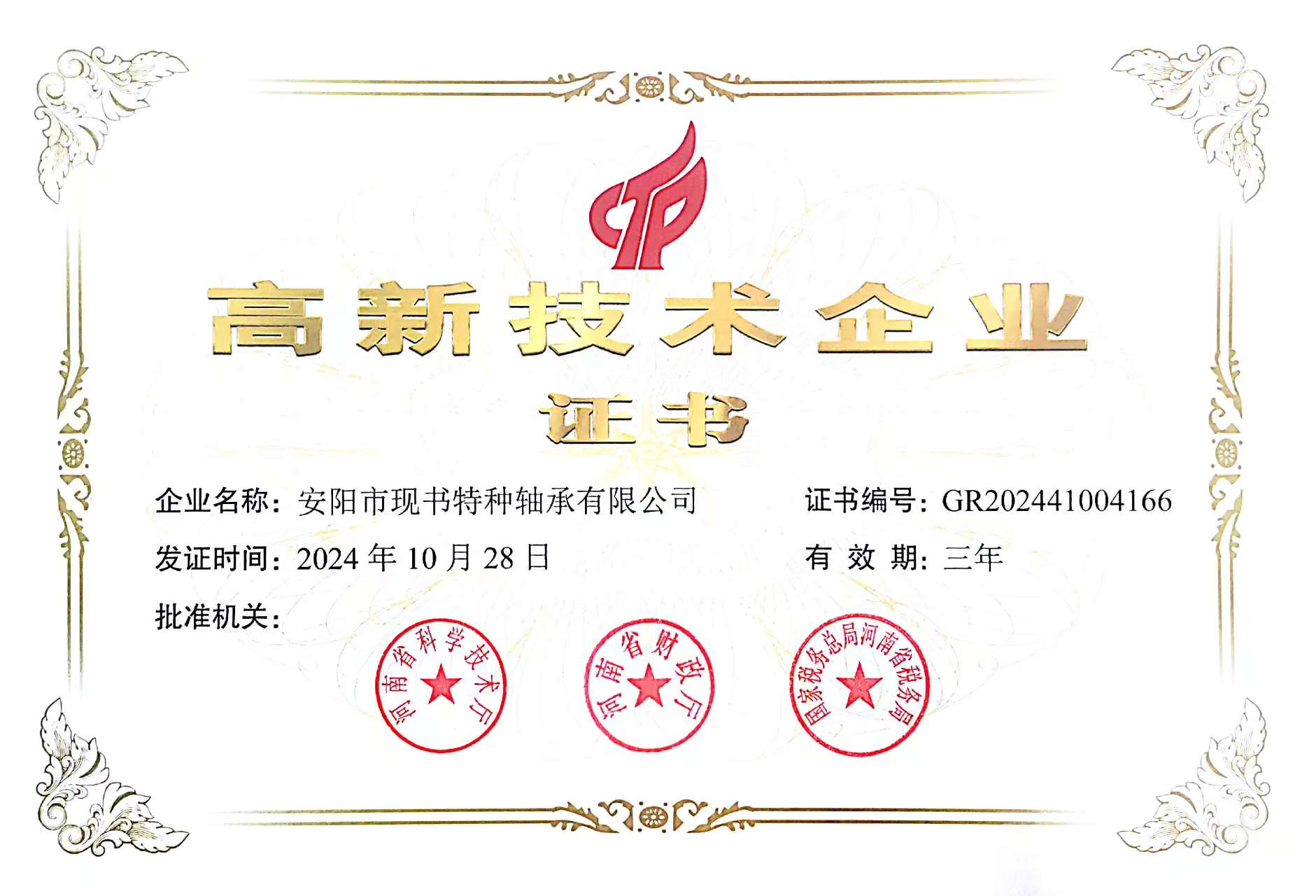高新技术企业证书